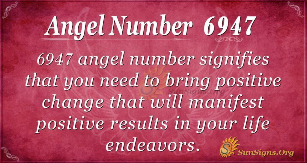 The symbolism of prophetic 6947 is that heaven urges you to have the abilities and capabilities you need to change with them. Heaven wants you to practice your abilities to help the world be a better place. Also, they want you to put more effort into your life endeavors since you have the potential to change.