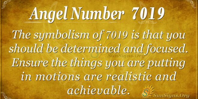 The symbolism of 7019 is that you should be determined and focused. Ensure the things you are putting in motion are realistic and achievable. Likewise, it would help if you were ready to move forward with your plan, make it quick, and start working on what you want to achieve. Additionally, work on ideas that will drive you to the achievements you are determined to succeed.