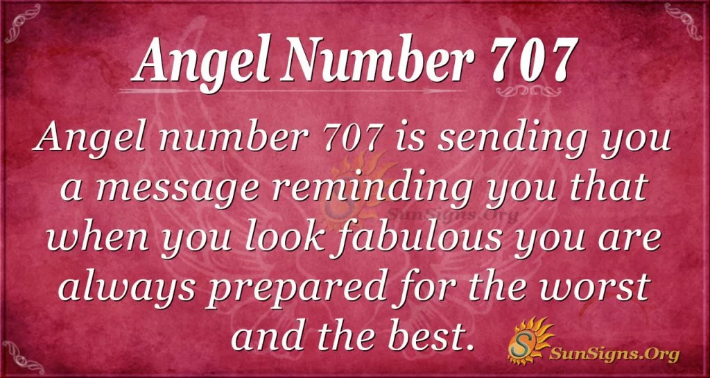 Well, the angels for number 707 assure you that when you look fabulous, you always feel fabulous. The guardian angels assure you that when you keep your mind feeling good, nothing that comes your way will bug you at any time. Do not be afraid to look good at all times. You will begin to receive compliments that, in turn, will leave you not regretting changing your life this way.