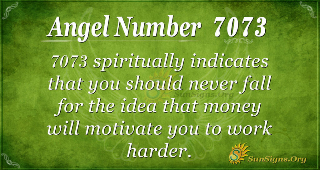 7073 spiritually indicates that you should never fall for the idea that money will motivate you to work harder. In reality, money will only inspire you at the start. However, as time goes by, you might lose this financial motivation. You need to find compelling reasons for doing something. Lucky number 7073 twin flame means that your reasons should convince you not to quit anything you have been doing.
