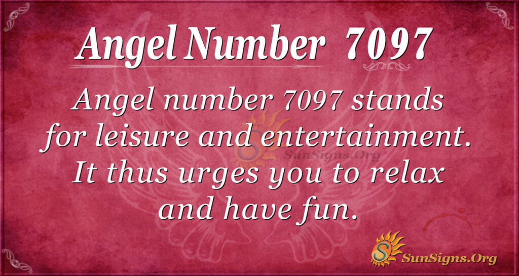 So, what does 7097 twin flame mean symbolically? Angel number 7097 stands for leisure and entertainment. 7097 is an angelic realm sign urging you to relax and have fun. After all, you cannot work all the time. Instead, take a break for the sake of your mental health. Furthermore, you will be more productive once you return to work.