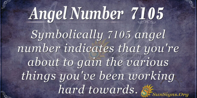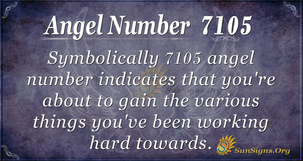 7105 is an angelic realm sign that helps you confirm that you have the willpower to stay on your current path toward victory. Besides, its Divine purpose is to help you become the best person you can be by elevating your status.