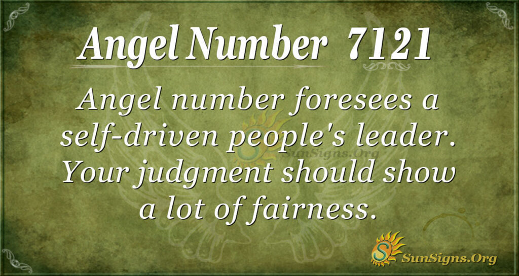 The appearance of 7121 spiritually means it’s time to lead the flock. You are to take the lead in praying and guiding other people to the right path. Your divine purpose is to acknowledge the heavens in your mission of searching for lost hearts.