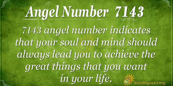 The symbolic meaning of 7143 is that you need to attract positive thinking to shun negativity. It will help you appreciate your mind’s way of thinking. Also, have a purpose in life to put more focus and dedication into it. It will help you be occupied and determined to achieve your best.