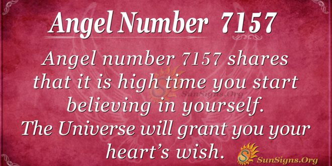 Do you keep on seeing 7157 everywhere? Give thanks to your soul guides for seeing 7157 often. Angel numbers send you a warning that you tackle your financial problems and start to live a happy life. A guide to you is that you don’t rely on debts alone. It is a better time you start believing in yourself and trust that the Universe will grant you your heart’s wish.