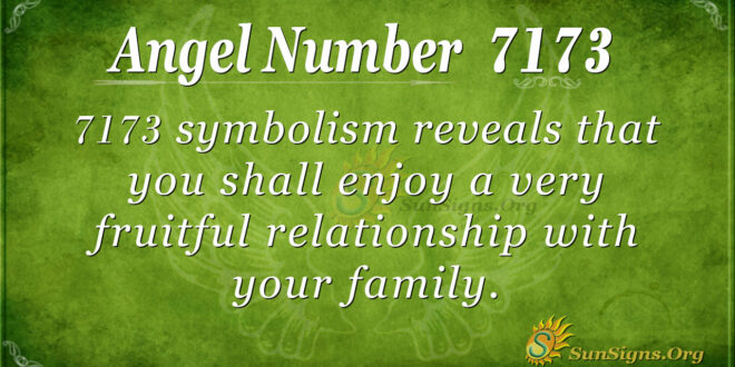 Eating healthy foods will help you stay healthy this season. Take time to cook at home and enjoy your meals. You should make it a bonding activity at home to strengthen your relationship with your family. 7173 Symbolism reveals that you shall enjoy a very fruitful relationship with your family.