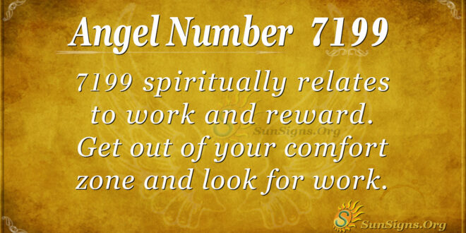 7199 is the sign that spiritually relates to work and reward. Get out of your comfort zone and look for work. Work is the only way to sustain your needs. Therefore, take any opportunity that comes your way. It guarantees you some income while waiting for a better opportunity to arise. Additionally, give your best when handing in any work. It might open doors for promotion and referral.