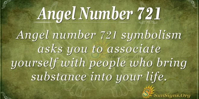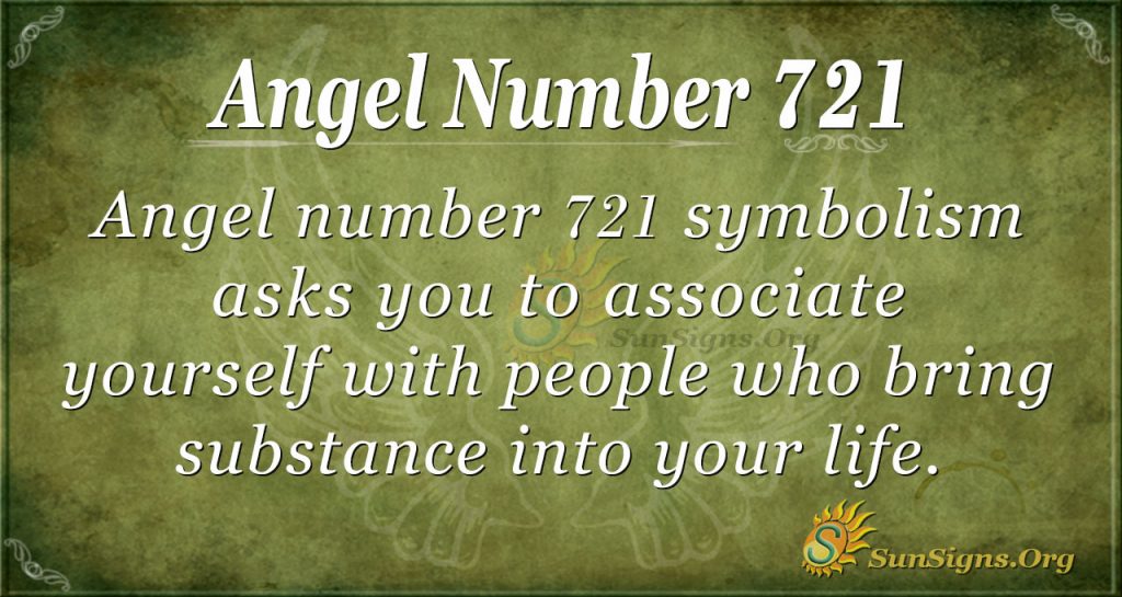 Angel number 721 symbolism asks you to associate yourself with people who bring substance into your life. When you do this, you will understand that even if you cannot change your job or current location, you can control other things that bring you joy.