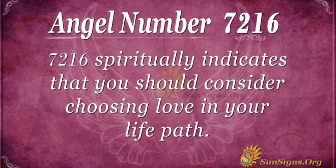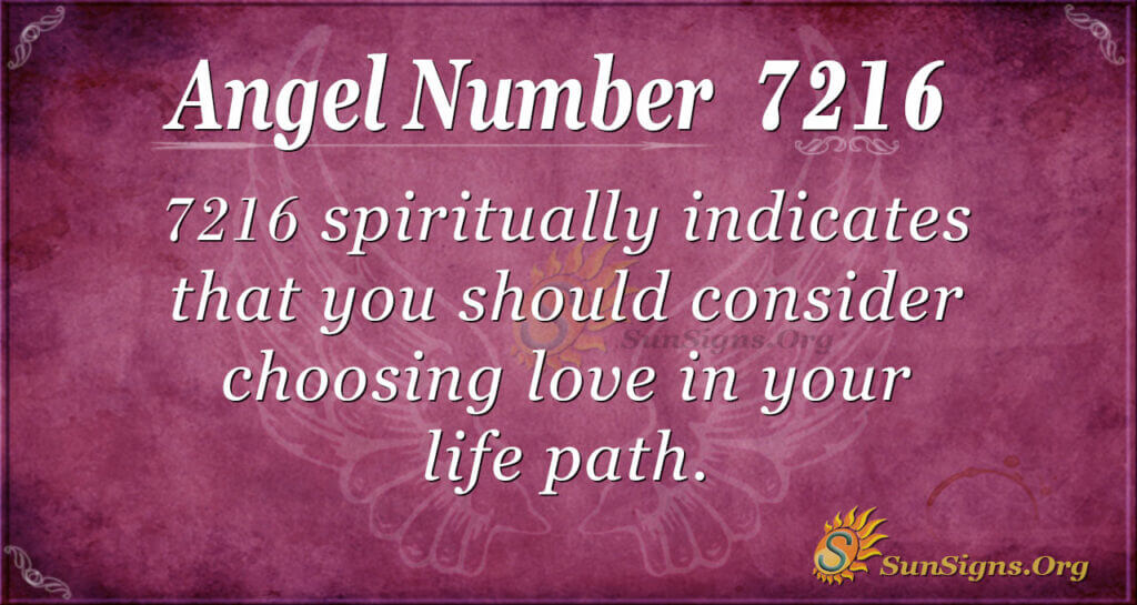 7216 spiritually indicates that you should consider choosing love in your life path. Love is powerful, as it opens up your world to the real you. It’s important to express your feelings to the world, and the universe will also open up to you.
