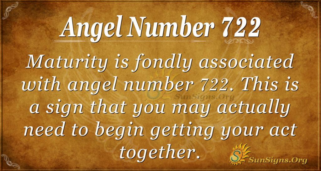 Number 722 shows that responsibility also matures a person. So if you do not have any responsibilities at home or even at work, begin to be responsible. When you have people dependent on you, you begin to understand that you must deliver. Because if you do not, then people will not trust you as much. Being mature takes time, but the first step is seeking to understand and know yourself more.