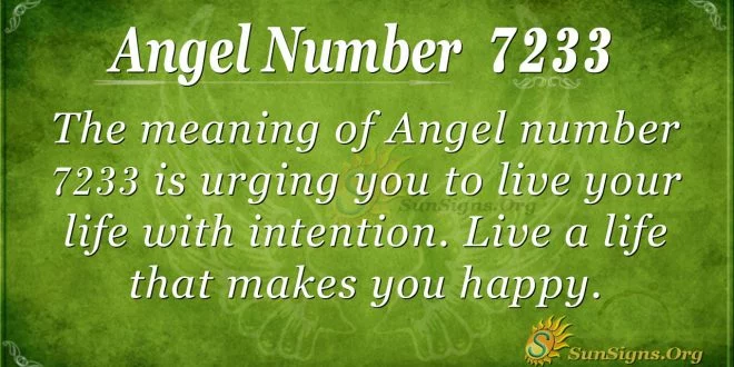 The meaning of 7233 is urging you to live your life with intention. Live a life that makes you happy. Be purposeful in every project that you undertake to fulfill. This angel number encourages you to be the best that you can be. You need to hold onto faith and hope no matter the things that are happening in your life. Believe in yourself, and your abilities, and things will turn out okay for you.