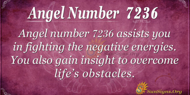 What is significant about the number 7236 symbolism? The significance of the 7236 angel number 7236 brings enlightenment, good luck, and guidance into light. Angel number 7236 is a message that constantly tells you that the power of this numerology in your life assists you in fighting negative energies. You will gain insight to overcome life’s obstacles and fall on the best of luck and prosperity.