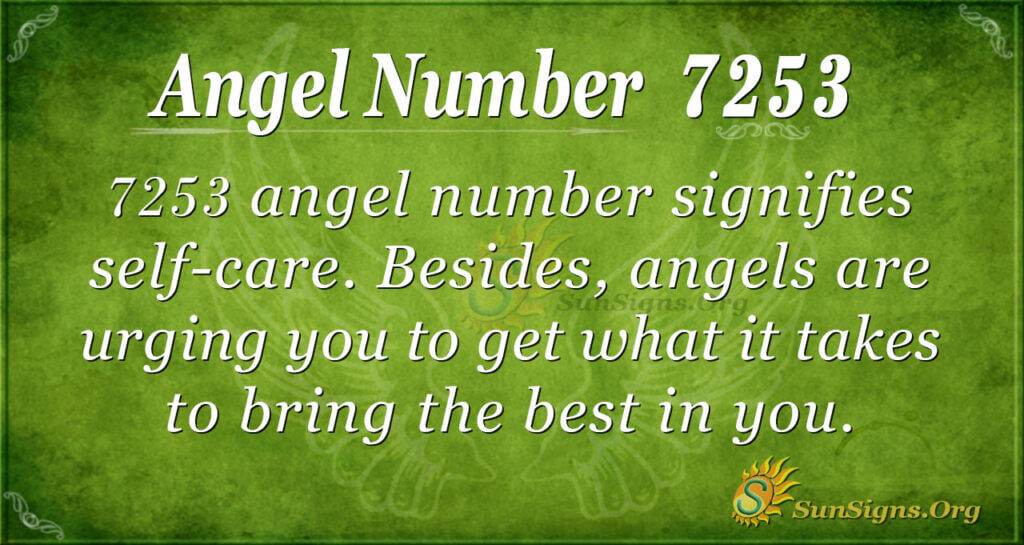 7253 angel number signifies self-care. Besides, angels are urging you to get what it takes to bring the best in you. You only need to find the time and listen to your inner self. Likewise, do not feel you are useless because your dreams are not coming through; instead, feel lucky since you have heaven within your reach. Lastly, The meaning of phone number 7253 encourages you to treat yourself nicely as you appreciate your sues and achievements.