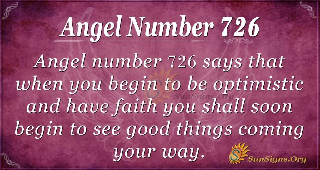 The angel number 726 influences numbers 7, 2, 72, and 26. Optimism is significantly associated with angel number 726. Do not be downcast. Do not be afraid, and do not be constantly afraid. You may have undergone or are currently going through some tough times. You may have lost your job, and it has been over a year since you have gotten another one.