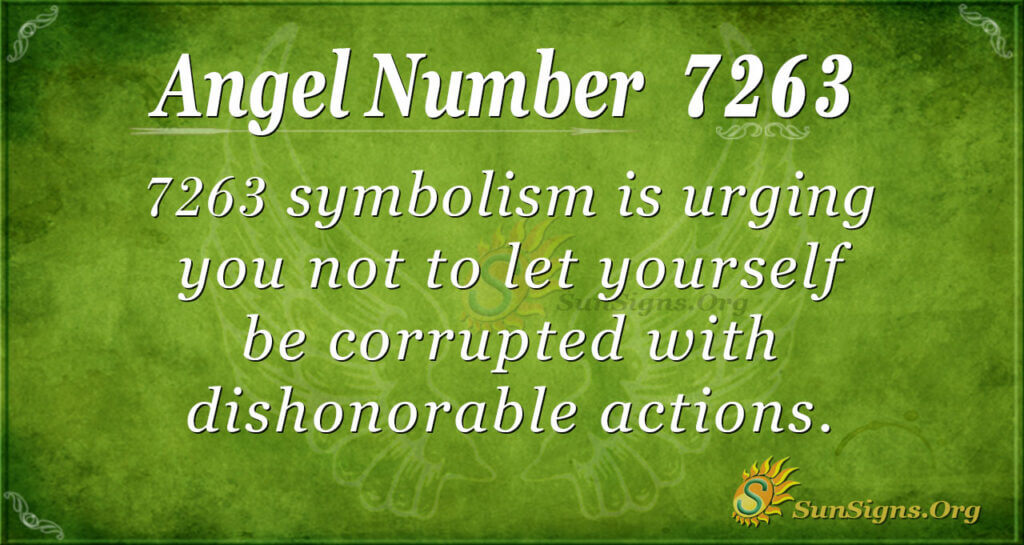 Surround yourself with people who value and appreciate the person you are. Do not stick around people who want to change you for the worse. Be with people who will motivate you to do better and become better. 7263 Symbolism urges you not to let yourself be corrupted by dishonorable actions.