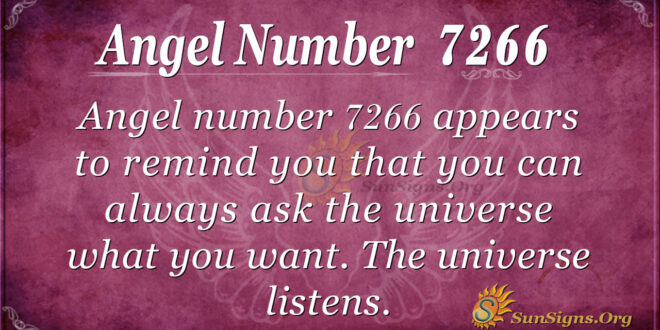 The meaning of the phone number 7266 reminds you that you can always ask the universe what you want. The universe listens, and you will be provided with all you need.