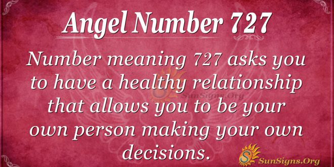 The guardian angels are sending you a message, assuring you that when you have an open mind, you should accept things as they come and go with the flow. Then you will always have a good time and never regret it. Having an open mind also includes constantly having the free mind to choose yourself. Number 727 asks you to have a healthy relationship that allows you to be your own person and make your own decisions.
