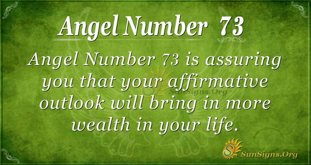 In numerology, the number 73 combines the vibrational energies of 7 and 3. Number 7 resonates with the energies and vibrations of spiritual enlightenment, spiritual awakening, discernment, inner wisdom, and intuition. This number enables you to become aware of your psychic abilities. Some things will become known to you only via the support and guidance of your guardian angels.
