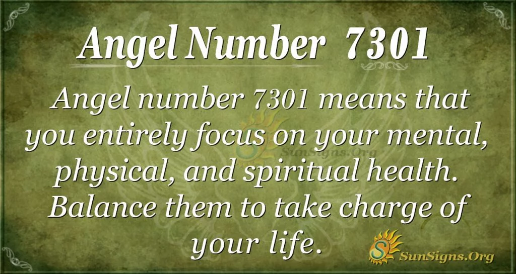 If 7301 keeps on appearing in your life, guardian angels tell you to interpret this sign with your current state. Meditate often to receive spiritual insight. What’s more, learn to trust in the Divine, opening up a gateway to clarity and discernment.