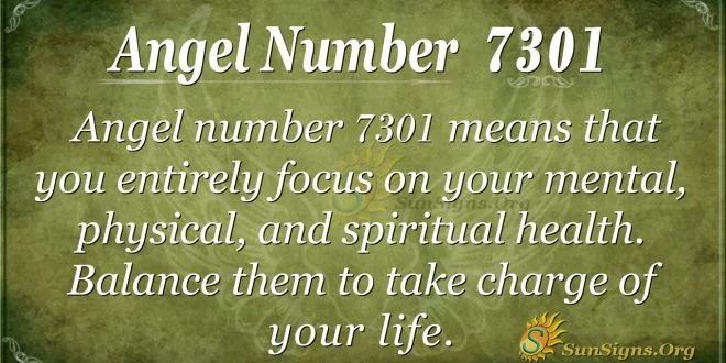What does number 7301 represent? The number 7301 in angel number 7301 symbolizes trust, wholeness, renewal, and excellence. There is a paramount reason why you need to trust in the Universe. First, it means that you have faith in the Divine. Second, your true thoughts will turn into reality.