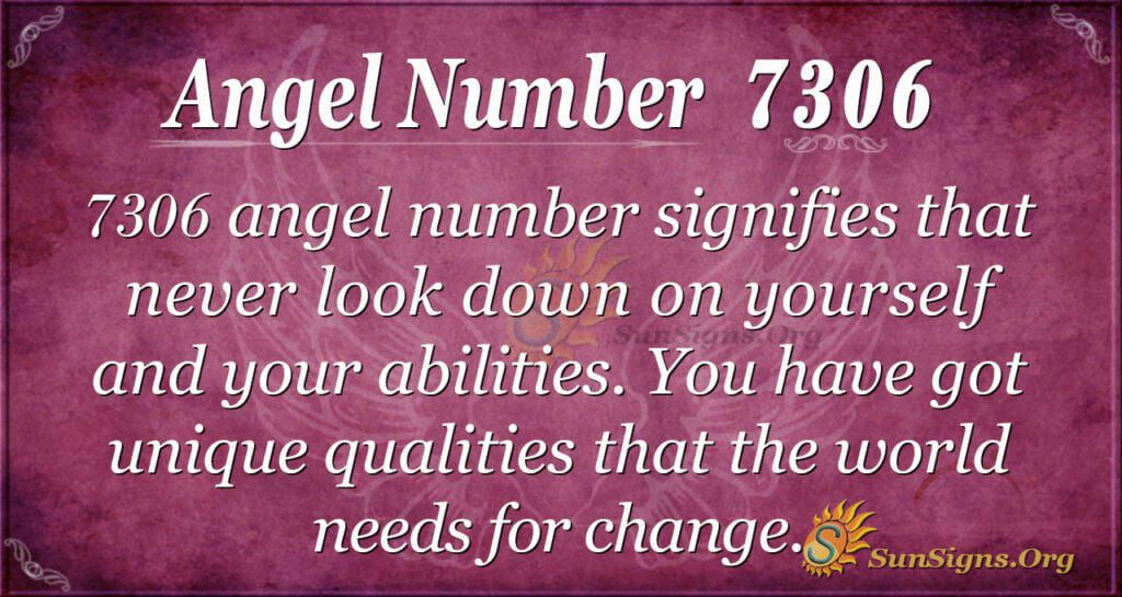 #7306 angel number signifies that never look down on yourself and your abilities. You have got unique qualities that the world needs for change.