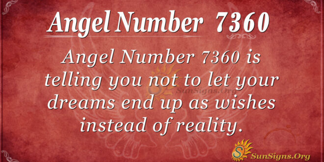 Angel Number 7360 is telling you not to let your dreams become mere wishes, but instead, to make them a reality. Put them into action. Start that business you have always wished to have. Seek help from people who have your best interests at heart.