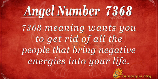 Your divine guides want you to improve your relationships. Appreciate your friends and family because they are always there for you. 7368 means you eliminate all the people who bring negative energy into your life. Focus on the people who matter and mean the world to you.