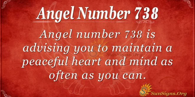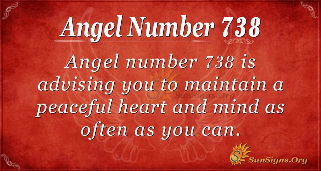 The number 738 shows that the greatest accomplishment you can ever achieve and own that no one can ever take from you is peace of mind. When you do the right thing at the right time, knowingly, you are usually overwhelmed with peace that you cannot understand. Angel number 738 symbolism includes 7 meanings, number 3, number 8, 73, and 38.