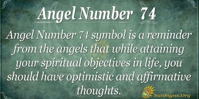 74 spiritually reminds the angels that you should have optimistic and affirmative thoughts while attaining your spiritual objectives. This outlook will help you concentrate on your life mission and achieve astounding results. The angels appreciate the use of your powerful instincts and feelings, intellect, and insight to achieve your objectives successfully in life.