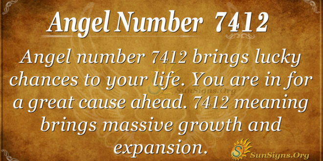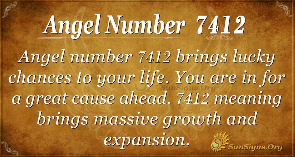 Is 7412 a good number? Angel number 7412 is a message that brings lucky chances to your life and those around you. Once you come across this sequence, rest assured that you are in for a great cause ahead. Not only does 7412 meaning bring massive growth, but it also helps you to come to terms with the present and what the future holds.