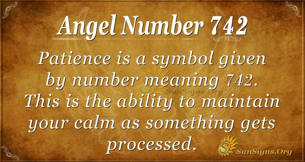 What does 742 mean spiritually? It would be wise to appreciate the value of being patient and calm in life. Avoid the urge for instant results or wanting quick gratification in everything. Indeed, in a fast-changing society, you may be tempted to throw patience out of the window and become too impatient.