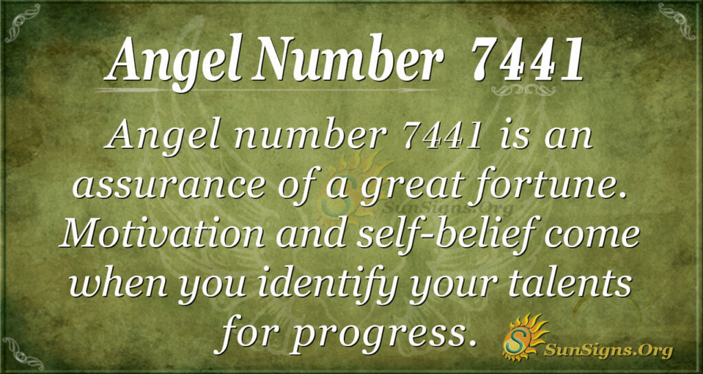 Angel number 7441 assures of great fortune. 7441 in your phone or house number assures that motivation and self-belief come when you identify your talents for progress.