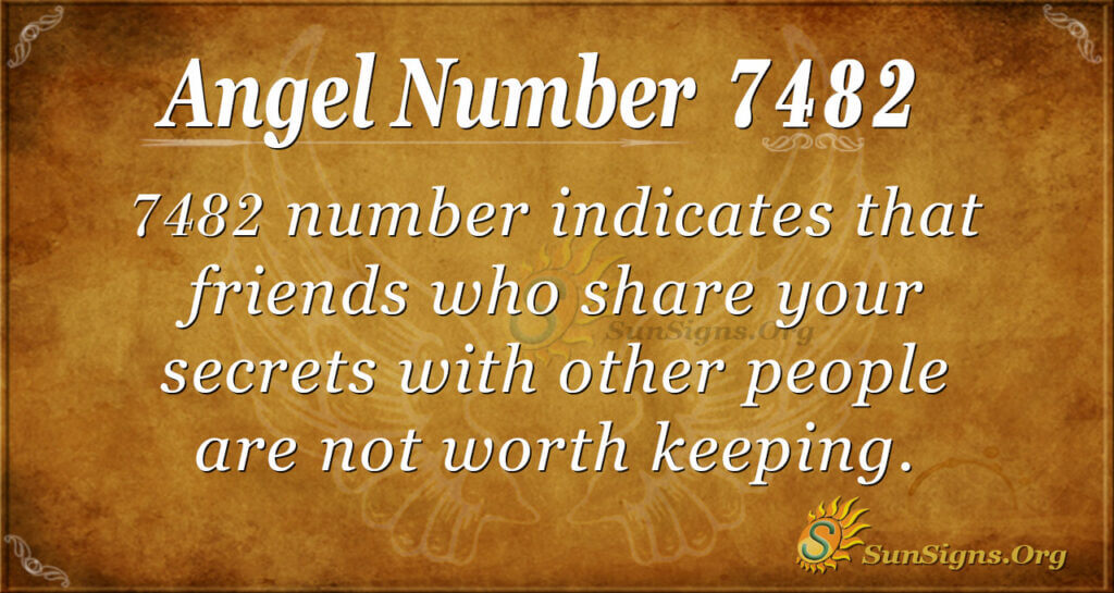 Have loyal friends. These friends have your best interests at heart and have been with you in good and bad times. The 7482 number indicates that friends who share your secrets with other people are not worth keeping.