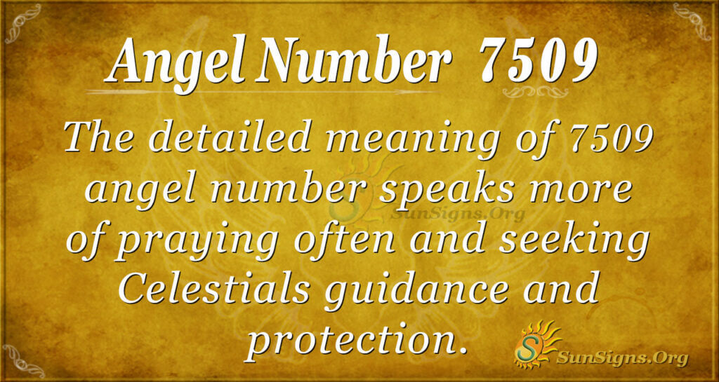 The detailed meaning of the 7509 angel number speaks more of praying often and seeking celestial guidance and protection. #7509 is an angelic realm sign that says you keep on working hard and hope for the best outcome.