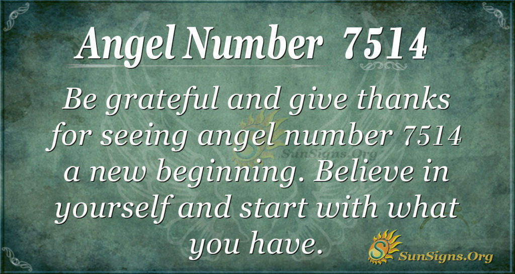 Is 7514 a good number? Angel number 7514 twin flame is considered one of the luckiest sequences in angelic numerology. Through 7514 meaning you find it easy to embrace the changes coming your way. As frightening and uneasy as it looks, take note that things do fall apart to rebuild the good in you.