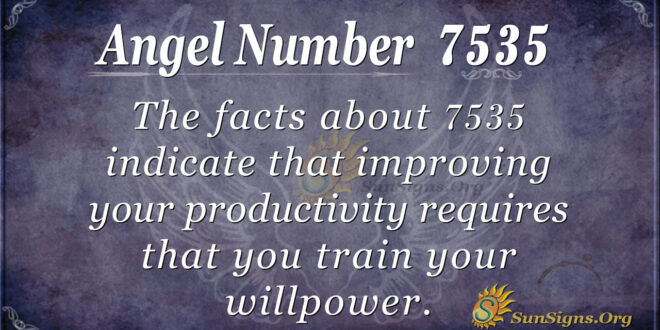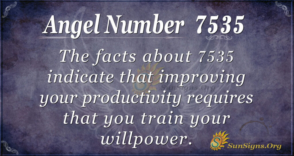 In summary, angel number 7535 carries an uplifting message about improving your self-discipline to increase your productivity. 7535 in your phone number or house number is a sign that your happiness will be influenced by your ability to achieve your goals.