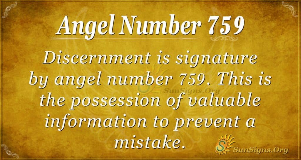 Discernment is signed by the number 759. This is the possession of valuable information. Your company is getting into a merger. You have nothing but respect for your boss. The meetings have gone well. Everything is almost settled. You will get your foot into the high office. This whole thing will get you a corner office. You are very excited about the whole thing.