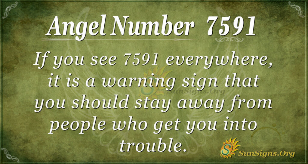 Attract people into your life who influence you positively. If you see #7591 everywhere, it is a warning sign that you should stay away from people who get you into trouble. Make friends with good and honest people.