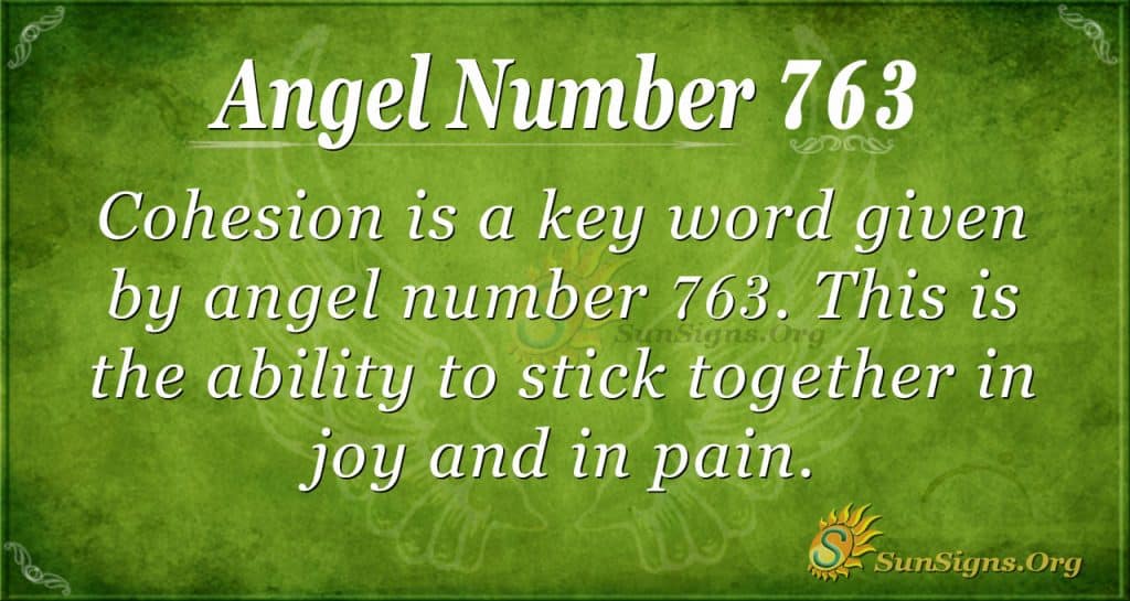 Cohesion is a keyword given by angel number 763. It is the ability to stick together in joy and pain. Your family is very typical. You can meet during the holidays and enjoy each other. Then, you say goodbye and do not see each other until the next holiday. One of the family members is facing a challenge.