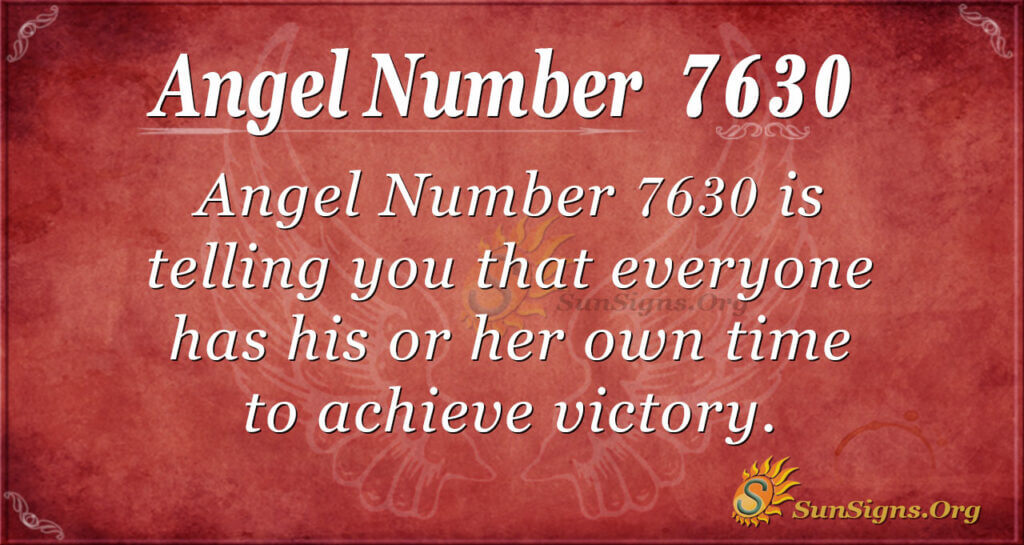 Angel Number 7630 Twin Flame is telling you that everyone has his or her own time to achieve victory. Do not look down upon yourself because others are developing more than you. The universe knows what is best for you. Exercise patience as you wait for your time to achieve success.