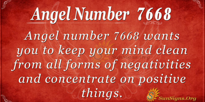 The angelic number 7668 constantly encourages you to cleanse your mind of all negativity and focus on the positive aspects of your life.