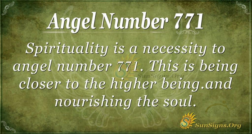The number meaning 771 speaks for itself. Number 7 is a sign of command. It is in control of an entity. 77 is a signal from a higher being. It brings about spirituality. 71 is a number of self-love. Number 1 is a number of self-respect. It measures the level of selflessness. This guardian angel is very therapeutic. It touches deep in the soul.