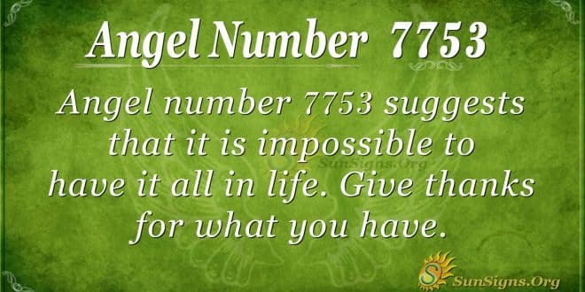 To put it, Angel 7753 suggests that it is impossible to have it all in life. Give thanks for what you have and flow with the Universe. Here’s what 7753 in angel numbers means: