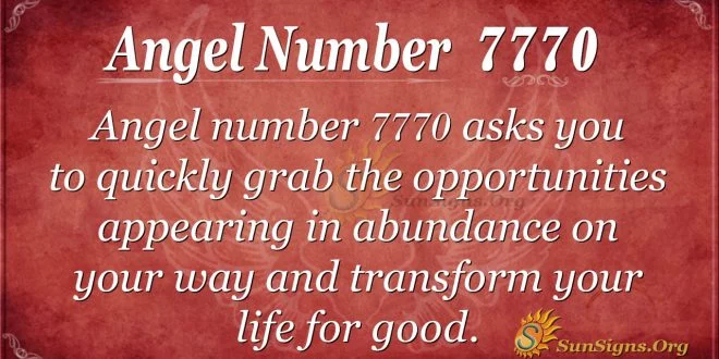 Angel number 7770 brings a window of opportunities in your life. As soon as you start seeing 7770 everywhere, you must realize that your life is standing at the doorstep of a significant change. You must quickly seize the opportunities that appear in abundance on your path and transform your life for the better.