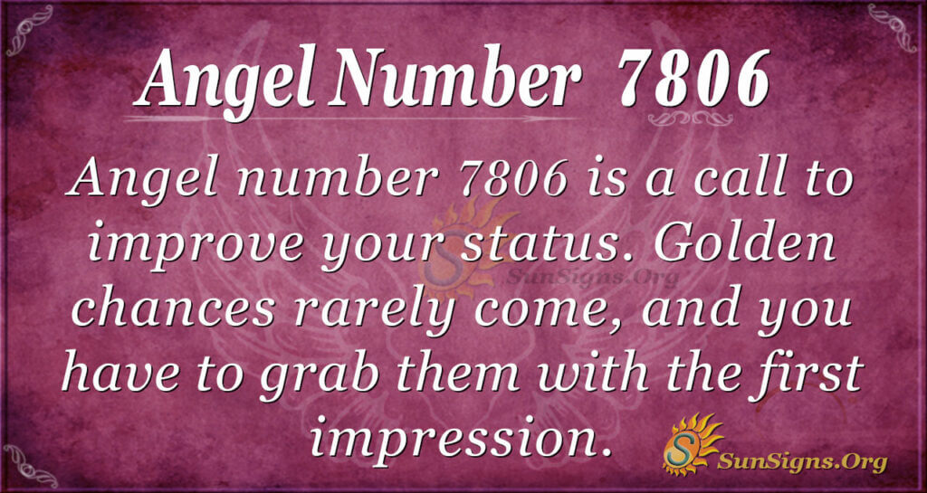 Angel number 7806 is the sign call to improve your status. Golden chances rarely come, and you have to grab them with the first impression.