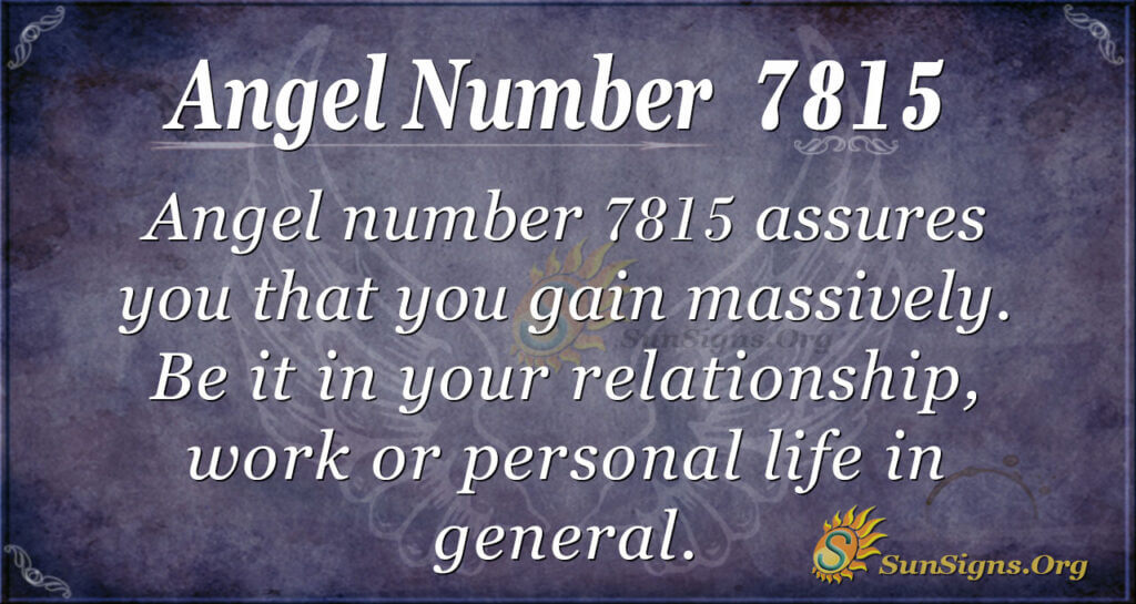 Do you still see 7815 everywhere? The appearance of 7815 in your life indicates that angels have recognized your positive affirmations. In this tone, expect magnificent results to come your way. Very soon, you will reap the profitable rewards. Thanks for your patience.