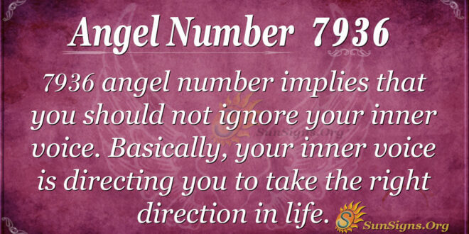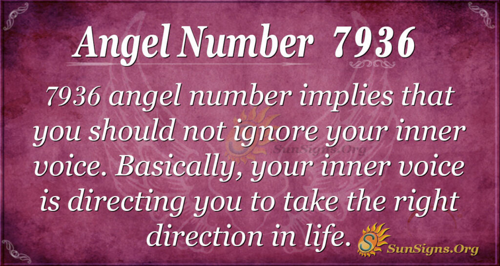 7936 angel number is the sign that implies you should not ignore your inner voice. 7936 in your phone number or house number is an assurance that your inner voice is directing you to take the right direction in life. Sometimes you can come to a stage where you are confused about the direction you should take. Else, when you come across such confusing moments, it is better to follow your inner voice.
