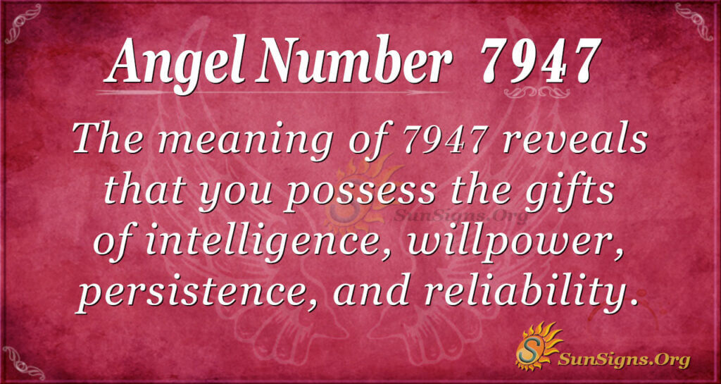 The meaning of the 7947 twin flame reveals that you possess the gifts of intelligence, willpower, persistence, and reliability. Use these gifts to uplift your life and the lives of those around you. Do not be selfish with your blessings, but instead use them to make the world a better place.