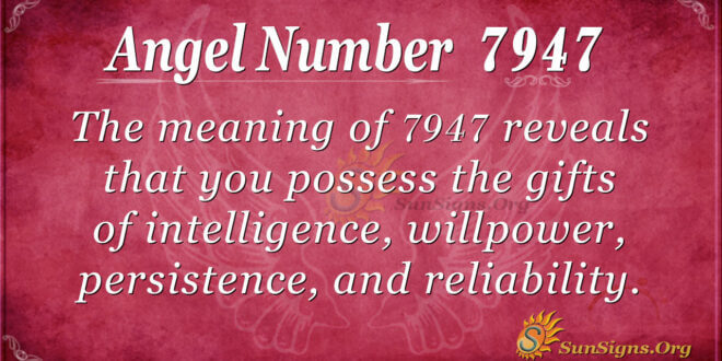 Your guardian angels are telling you that they are proud of you because of the great job you’re doing with your life. 7947, symbolism assures you that soon you will receive the rewards of all your hard work.