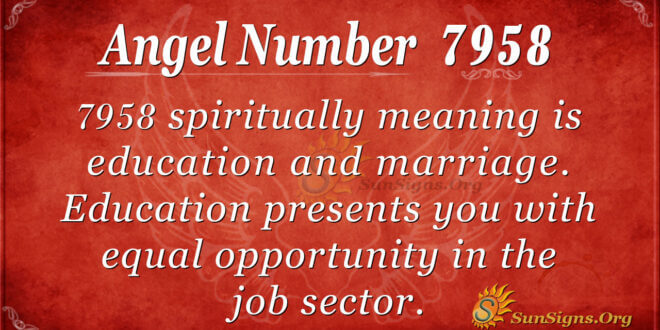 7958 is the sign that means education and marriage. Education presents you with equal opportunity in the job sector. Hence, get the required education. Afterward, enter the job market to be marketable. Also, you will acquire the skills and knowledge used in the selected job market. You will also be in a position to apply for different jobs as you are qualified.
